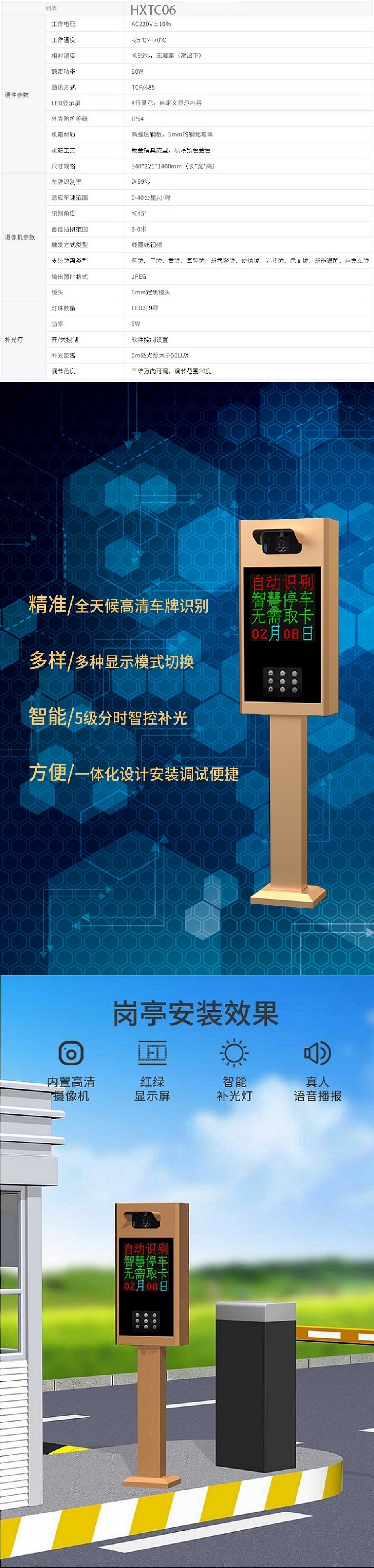 • 產品描述:智慧車牌識別,全面而來 內置高清攝像機 紅綠顯示屏 智能補光燈 真人語音播報